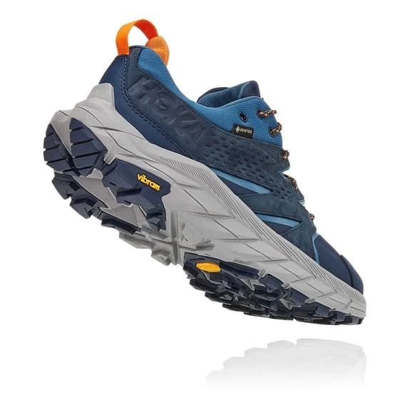 The HOKA Anacapa Low Gore-Tex shoes are sustainable hiking shoes for everyday use. This versatile model, designed with lightweight leather certified by the Leather Working Group, uses recycled polyester in the collar, mesh and laces.