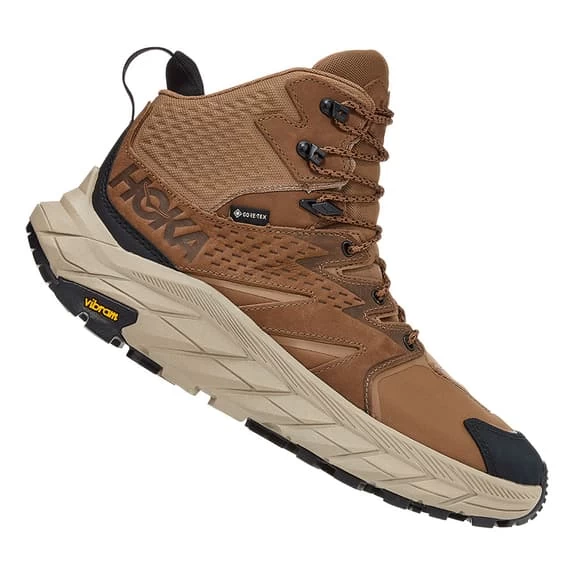 The HOKA Anacapa Mid Gore-Tex boots are sustainable hiking boots for everyday use. This versatile model, designed with lightweight leather certified by the Leather Working Group, uses recycled polyester in the collar, mesh and laces.