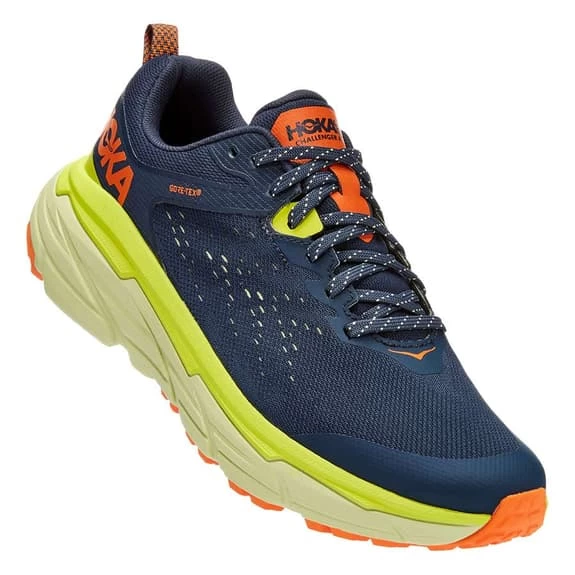 The HOKA Challenger ATR 6 GORE-TEX shoes can tackle trails and dirt roads, rain or shine. This trail shoe features wide lugs for smooth transitions and a soft underfoot feel. Complemented by the waterproof GORE-TEX shaft, this all-terrain shoe lets you run your best in any season. The Challenger ATR 6 takes you everywhere, no matter what the weather.