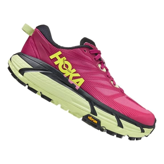 The HOKA Mafate Speed 3 women’s running shoe is back in its third edition, with a sustainable mesh upper in recycled polyester. With molded KPU overlays for support, the Mafate Speed 3 is constructed with the same aggressive dual-density EVA foam and 5mm Vibram composite outsole. Designed with a dynamic textile tongue for comfort. Stretchy and comfortable, this trail champ also features a breathable perforated tongue section and a reinforced H-frame for a custom fit. On technical terrain, the Mafate Speed 3 demonstrates its ability to handle any conformation or natural event.